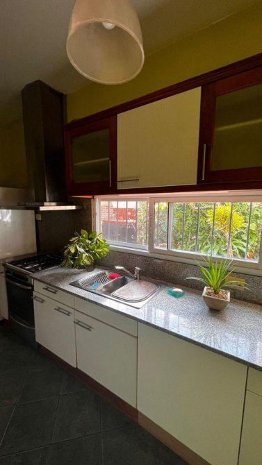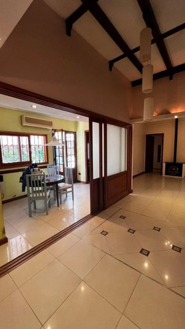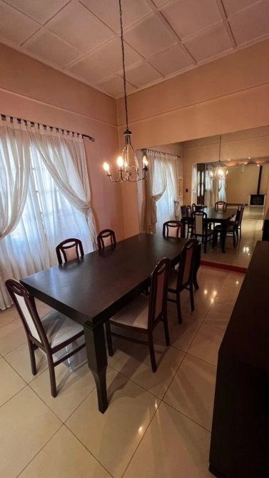 Entrada, rejas al frente, ingreso a un amplio living comedor con ventanales al frente con salamandra. Piso porcelana. Acceso a la cocina comedor por una amplia puerta corrediza.