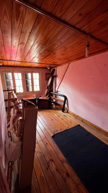 En el sector izquierdo, se encuentra la cochera pasante con control automatizado para dos vehículos grandes. En planta alta, encontramos un amplio sector que puede ser utilizado como playroom, escritorio o dos dormitorios.