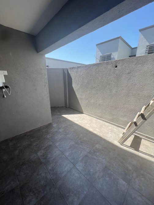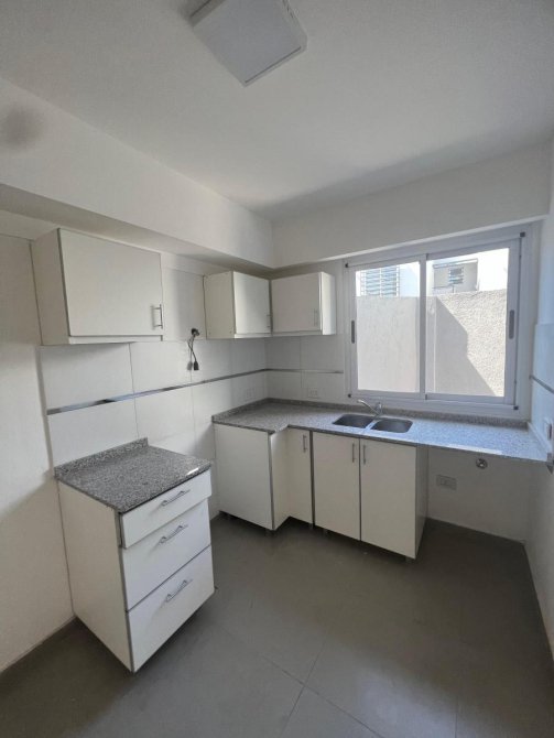 Living comedor con piso porcelanato y preinstacion de aire acondicionado. Salida al patio con puerta balcon con rejas