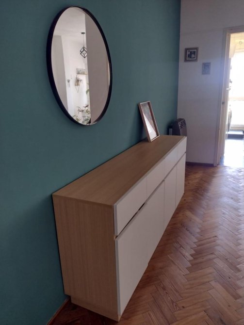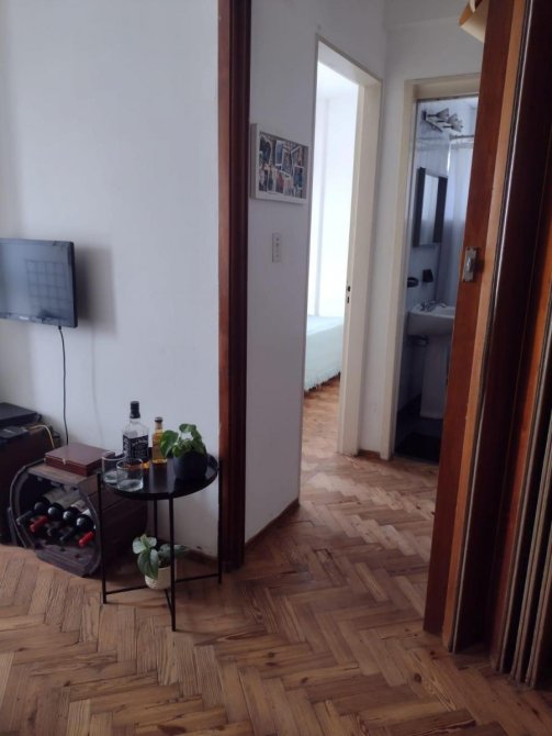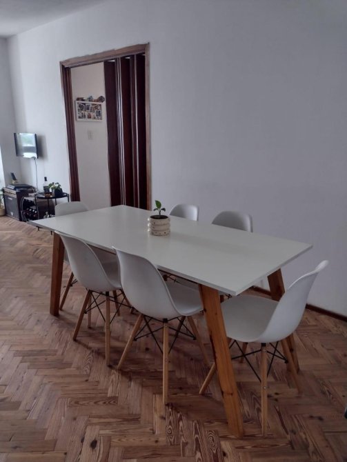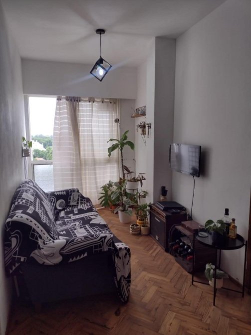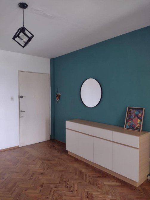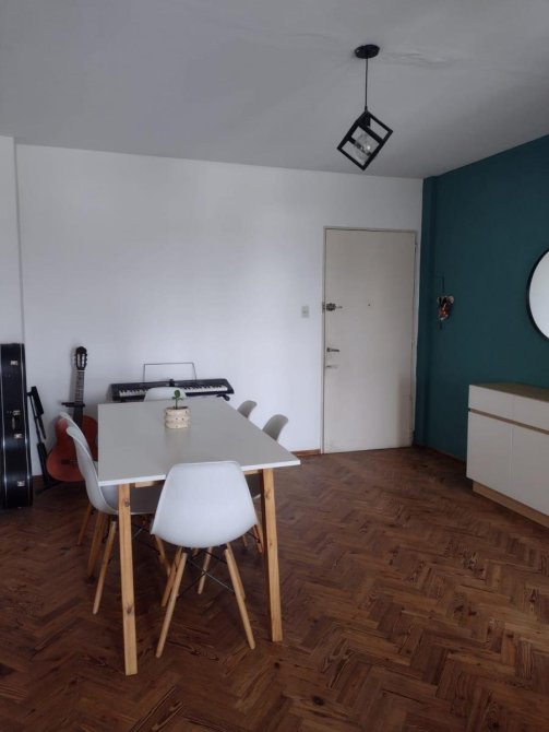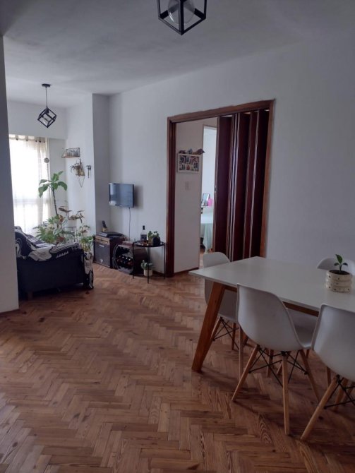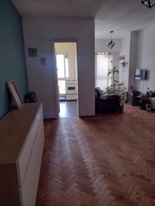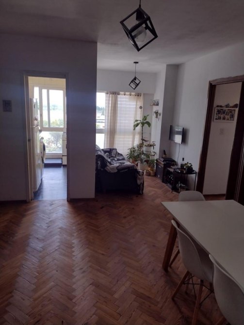 Entrada al departamento, living comedor amplio. Pisos de madera. Ventanal que hace el ambiente luminoso. Cocina separada, también con ventanal que permite el ingreso de la luz natural.
