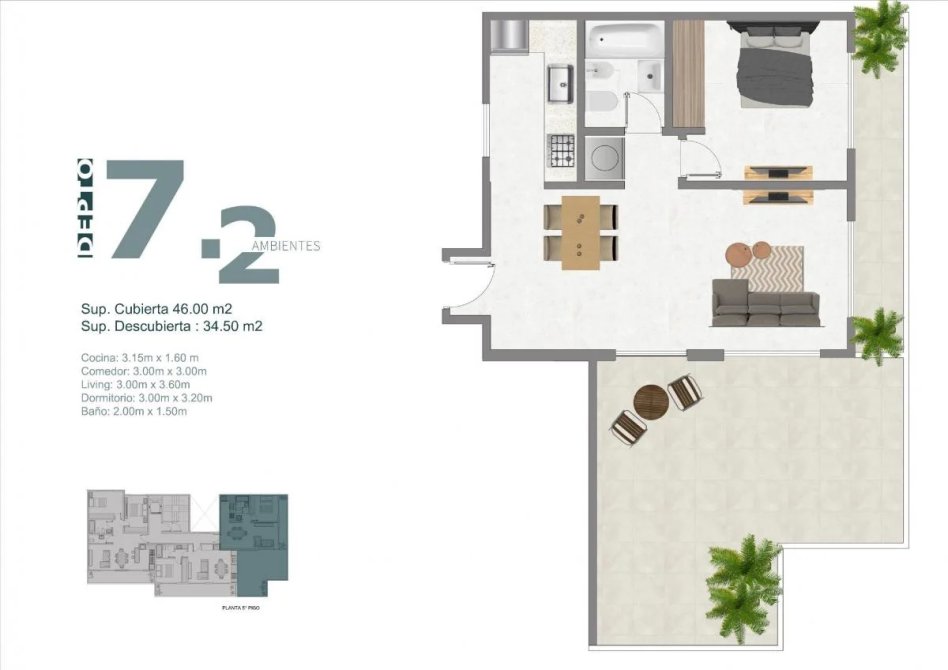 Departamento de primera calidad, 2 ambientes con MEGA BALCON PROPIO DE 34,5 M2. Detalles de categoría. Super luminoso. Todo eléctrico.
