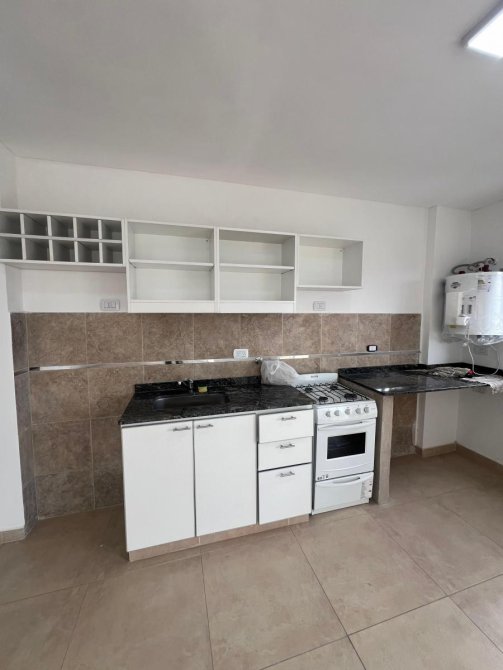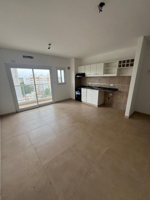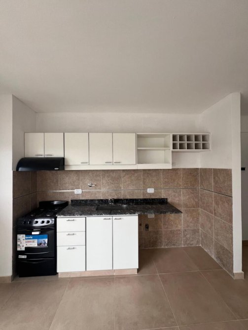 Entrada a departamento luminoso, cocina con bajo y sobre mesada, vinoteca. Espacio para lavarropas y para heladera. Cajones y estantes colocados.