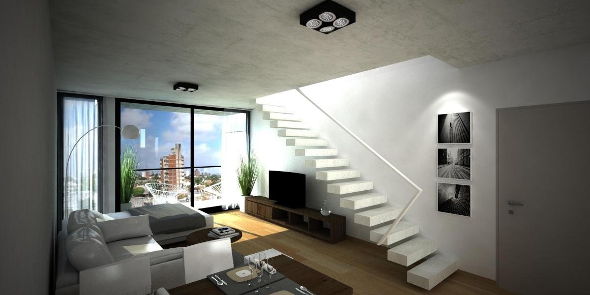 Ambiente amplio de 3,90 x 6,50. Muy luminoso, con espacio para juego de living, juego de comedor y cama. Ventanal con salida al balcon de 1,30 x 3,10. Cocina separa de 1,35 x 2,20. Bano completo con vanitory y banera. Escalera hacia la gran terraza propia de 8,80 x 3,90.