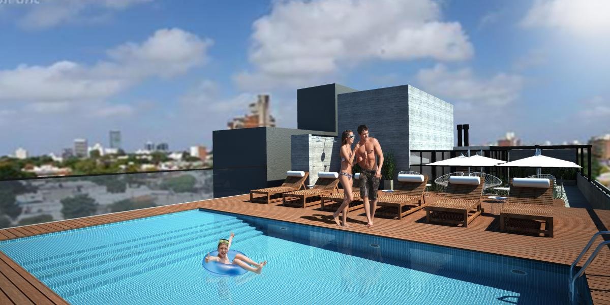 - Amenities: SUM con toilette y office, muebles de melamina, sala de juego para ninos, gimnasio equipado con solado de goma acustico. Piscina y solarium con deck.