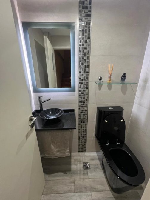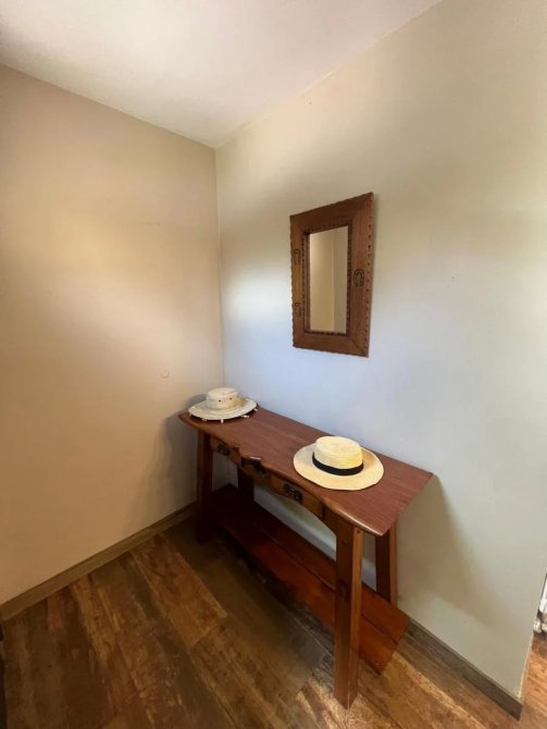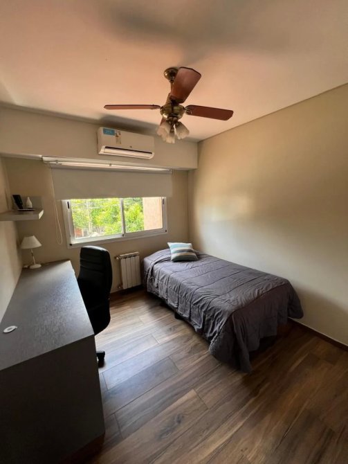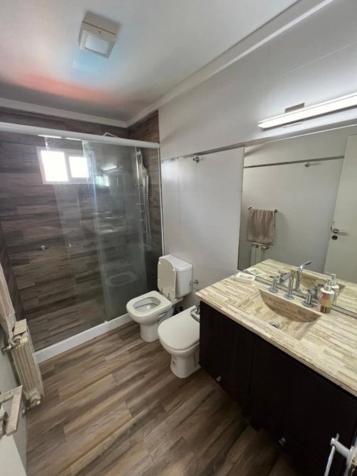 Planta alta: dormitorio principal en suite con ventanal y balcon al frente. Luminoso. Pared de piedra. Vestidor con puertas corredizas, interiores y cajones colocados. Baño completo con banera y ducha con mampara de vidrio. Vanitory, bacha moderna y espejo. Segundo y tercer dormitorio con placares empotrados, con interiores colocados, de puertas corredizas y ventiladores de techo. Cuarto dormitorio o con opcion de escritorio, con placard de puertas corredizas tambien. Baño completo, ducha con mampara de vidrio, vanitory y espejo.
