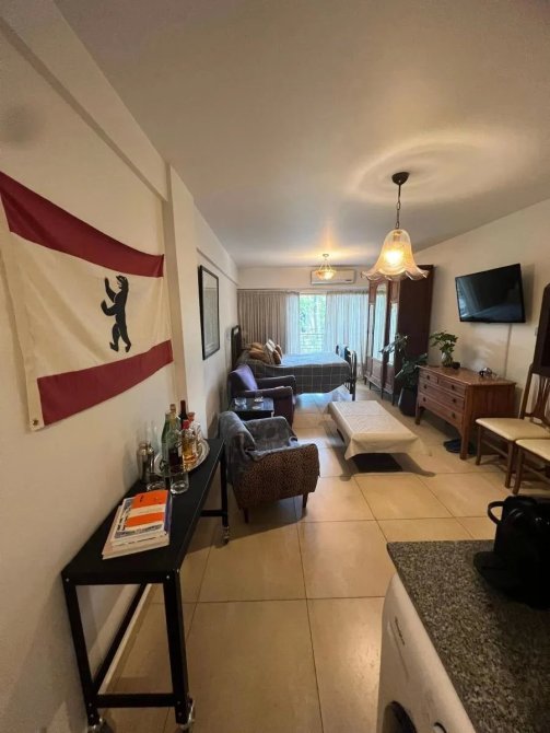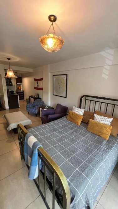 Complejo moderno con ascensor. Departamento completamente amoblado, muebles de calidad y buen gusto, aire acondicionado, sillones, mesa ratona, muebles de madera, cama.