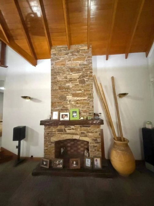 Entrada al living en doble altura, ventana bow window al frente, luminoso, con hogar a leña. Toilette de recepcion.