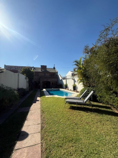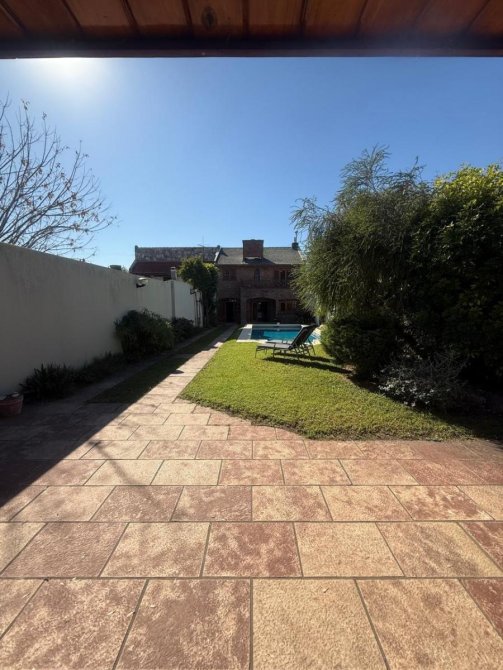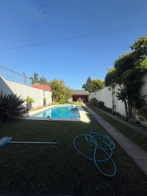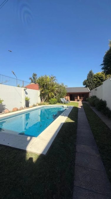 Excelente fondo (metros libres 298), gran piscina de material de 9x3,5. Mega quincho 8,66 x 6, con parrilla, cocina y mueble bajo mesada, lugar de guardado, espacio para juego de sillas y mesa, baño. Ventilador de techo.
