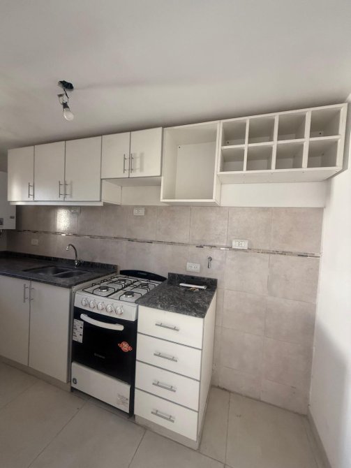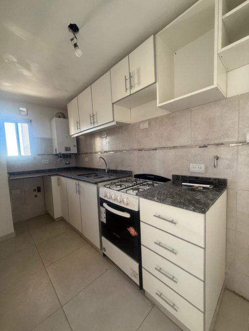 Cocina independiente con gran mueble bajo y sobre mesada de color blanco, espacio para vinoteca, espacio para lavarropas, living-comedor muy luminoso con pisos de porcelanato con puerta balcón, blacon muy espacioso al frente con hermosa vista. Toilette.