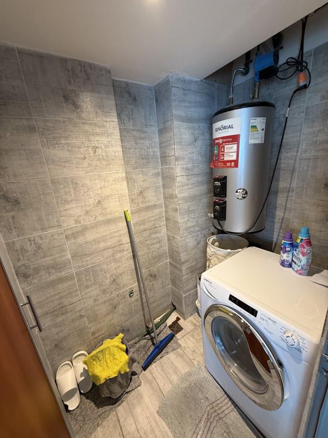 Lavadero independiente con termotanque marca Senorial y mueble de guardado.